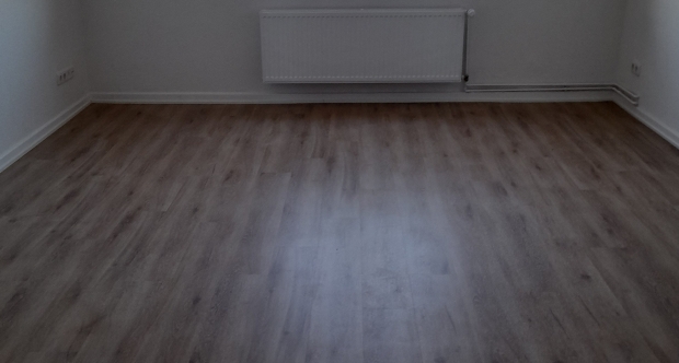 Die 3-Zimmerwohnung ist mit Designplanken in Holzoptik ausgestattet. Das Badezimmer verfügt über ein Duschbad.